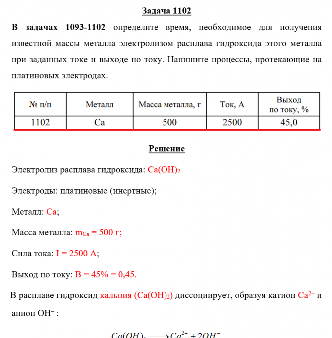 Для студентов по предмету ХимияЗадача 1102 - определите время, необходимое для получения известной массы металла электролизом расплава гидроксида этого металла при заданных токе и вЗадача 1102 - определите время, необходимое для получения известной массы металла электролизом расплава гидроксида этого металла при заданных токе и в