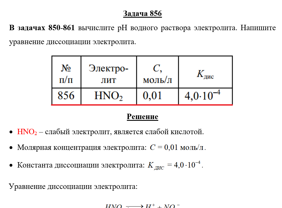 Для студентов по предмету ХимияЗадача 856 - вычислите pH водного раствора электролита. Напишите уравнение диссоциации электролита.Задача 856 - вычислите pH водного раствора электролита. Напишите уравнение диссоциации электролита.