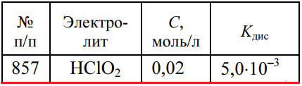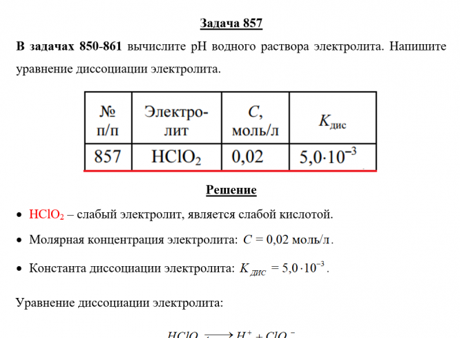 Задача 857: Задача 857 - вычислите pH водного раствора электролита. Напишите уравнение диссоциации электролита.
