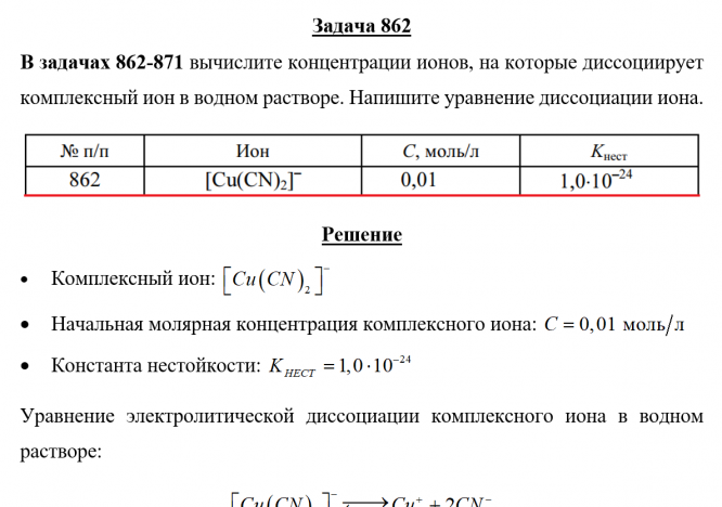 Задача 862 - вычислите концентрации ионов, на которые диссоциирует комплексный ион в водном растворе. Напишите уравнение диссоциации иона.