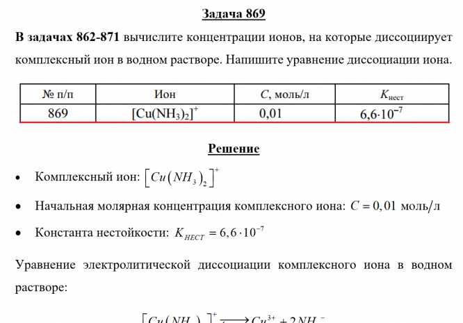 Задача 869 - вычислите концентрации ионов, на которые диссоциирует комплексный ион в водном растворе. Напишите уравнение диссоциации иона.