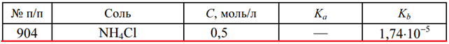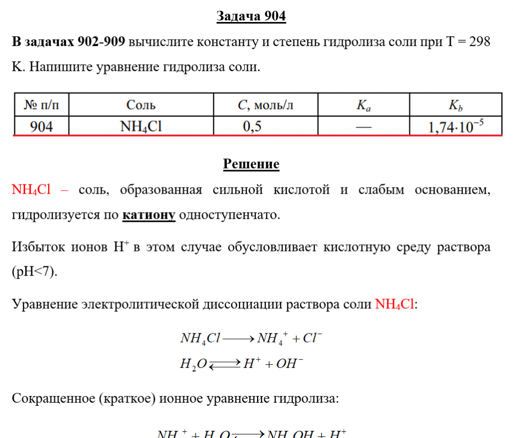 Задача 904: Задача 904 - вычислите константу и степень гидролиза соли при Т = 298 K. Напишите уравнение гидролиза соли.
