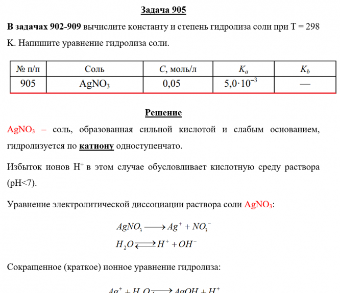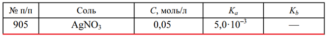 Задача 905: Задача 905 - вычислите константу и степень гидролиза соли при Т = 298 K. Напишите уравнение гидролиза соли.