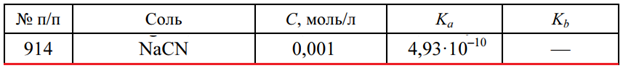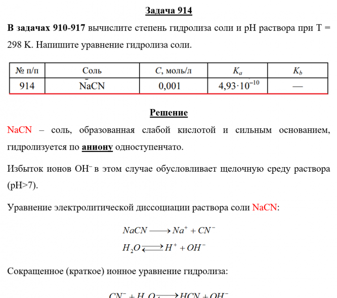 Для студентов по предмету ХимияЗадача 914 - вычислите степень гидролиза соли и рН раствора при Т = 298 K. Напишите уравнение гидролиза соли.Задача 914 - вычислите степень гидролиза соли и рН раствора при Т = 298 K. Напишите уравнение гидролиза соли.