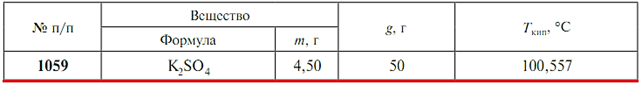Задачи 1057-1067 (табл. 3.5). Определите степень диссоциации электролита в водном растворе (m — масса растворенного вещества; g — масса растворителя; Ткип — температура кипения раствора). Эбулиоскопическая постоянная воды 0,52 К·моль-1·кг.