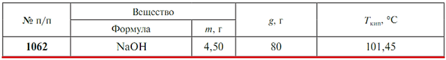 Задачи 1057-1067 (табл. 3.5). Определите степень диссоциации электролита в водном растворе (m — масса растворенного вещества; g — масса растворителя; Ткип — температура кипения раствора). Эбулиоскопическая постоянная воды 0,52 К·моль-1·кг.