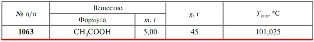 Задачи 1057-1067 (табл. 3.5). Определите степень диссоциации электролита в водном растворе (m — масса растворенного вещества; g — масса растворителя; Ткип — температура кипения раствора). Эбулиоскопическая постоянная воды 0,52 К·моль-1·кг.