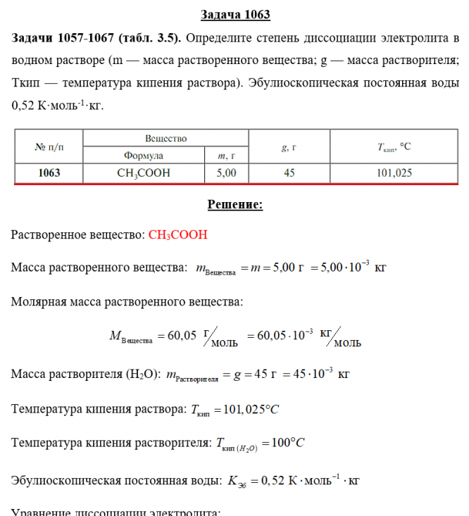 Для студентов по предмету ХимияЗадача 1063 - Определите степень диссоциации электролита в водном растворе (m — масса растворенного вещества; g — масса растворителя; Ткип — температуЗадача 1063 - Определите степень диссоциации электролита в водном растворе (m — масса растворенного вещества; g — масса растворителя; Ткип — температу
