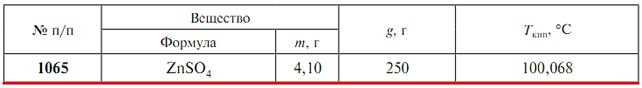 Задачи 1057-1067 (табл. 3.5). Определите степень диссоциации электролита в водном растворе (m — масса растворенного вещества; g — масса растворителя; Ткип — температура кипения раствора). Эбулиоскопическая постоянная воды 0,52 К·моль-1·кг.