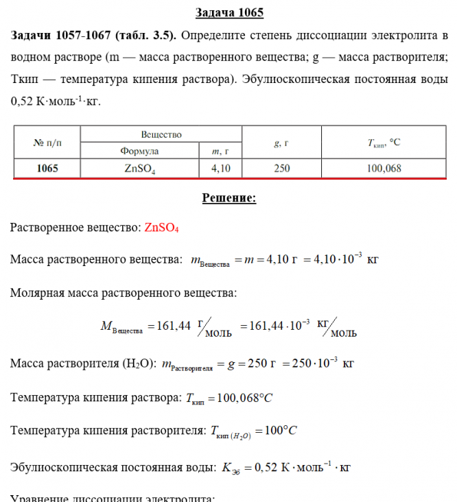 Для студентов по предмету ХимияЗадача 1065 - Определите степень диссоциации электролита в водном растворе (m — масса растворенного вещества; g — масса растворителя; Ткип — температуЗадача 1065 - Определите степень диссоциации электролита в водном растворе (m — масса растворенного вещества; g — масса растворителя; Ткип — температу
