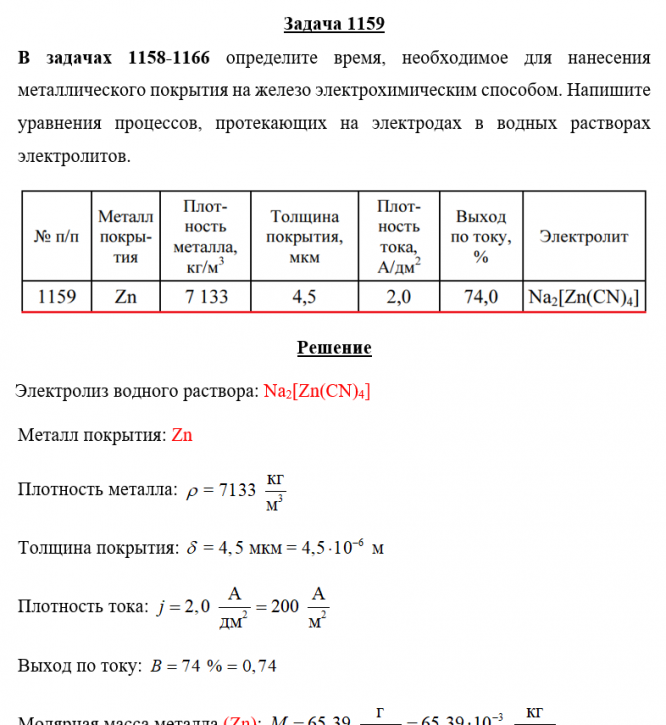 Задача 1159 - определите время, необходимое для нанесения металлического покрытия на железо электрохимическим способом. Напишите уравнения процессов, протекающих на электродах в водных растворах электролитов.