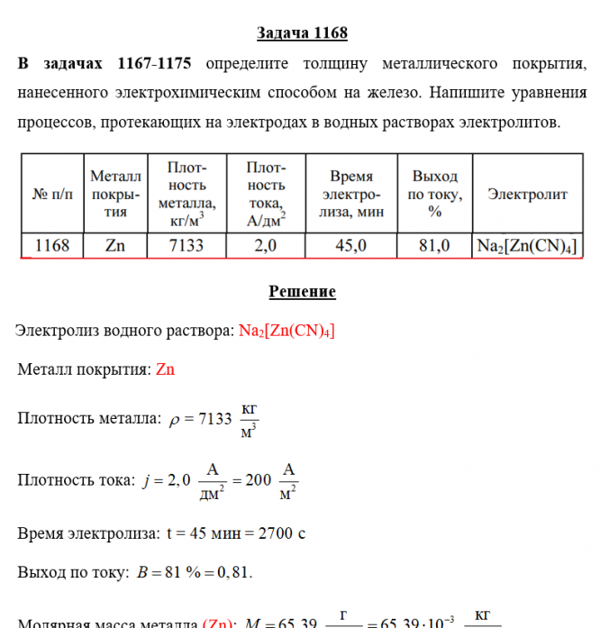 Задача 1168 - определите толщину металлического покрытия, нанесенного электрохимическим способом на железо. Напишите уравнения процессов, протекающих на электродах в водных растворах электролитов.