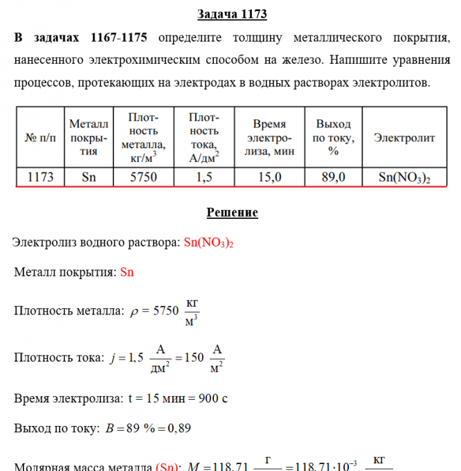 Задача 1173 - определите толщину металлического покрытия, нанесенного электрохимическим способом на железо. Напишите уравнения процессов, протекающих на электродах в водных растворах электролитов.