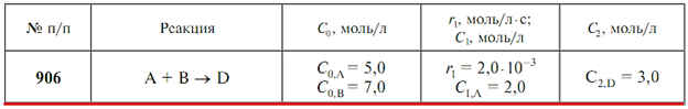 Задачи 906-915 (табл. 2.14). Для условной элементарной реакции рассчитайте скорость реакции r2 при указанной концентрации С2 одного из компонентов, если известны начальные концентрации реагентов С0 и скорость реакции r1 при определенной концентрации одного из компонентов С1. .
