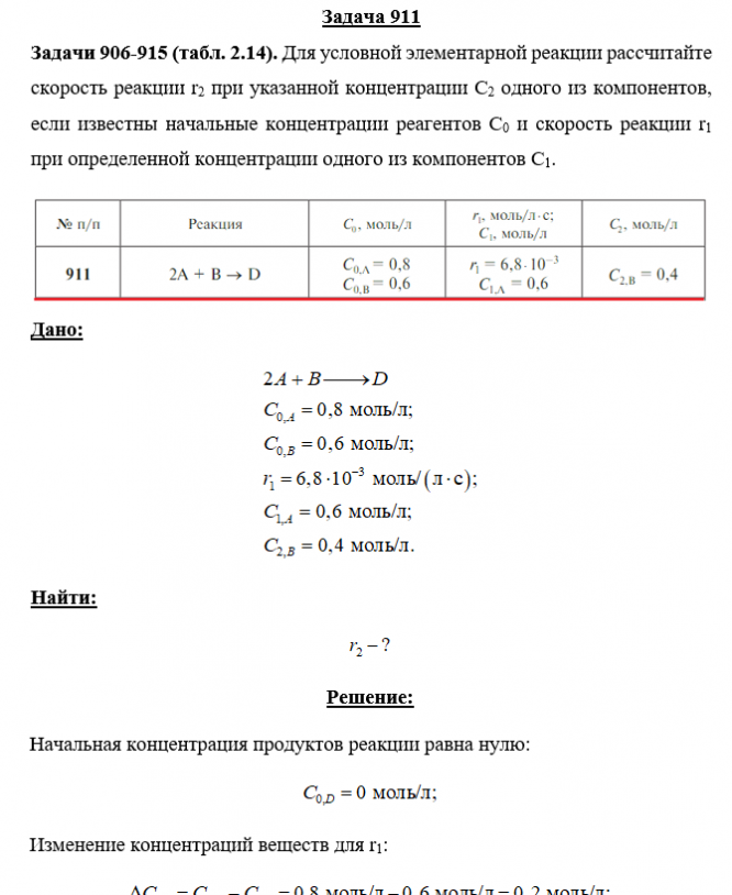Для студентов по предмету ХимияЗадача 911 - Для условной элементарной реакции рассчитайте скорость реакции r2 при указанной концентрации С2 одного из компонентов, если известны начаЗадача 911 - Для условной элементарной реакции рассчитайте скорость реакции r2 при указанной концентрации С2 одного из компонентов, если известны нача
