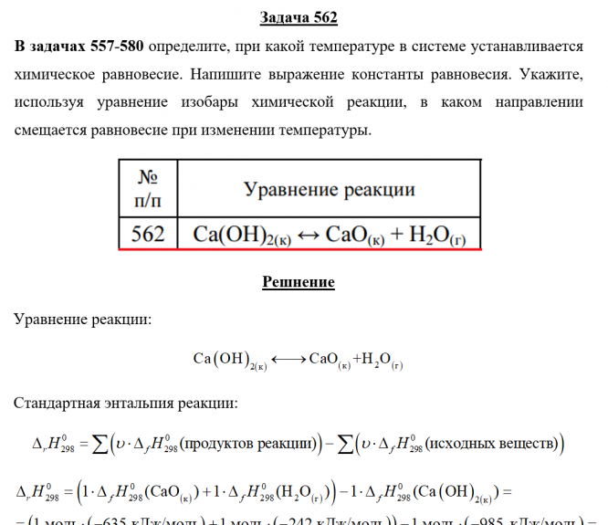 Задача 562 - определите, при какой температуре в системе устанавливается химическое равновесие. Напишите выражение константы равновесия. Укажите, используя уравнение изобары химической реакции, в каком направлении смещается равновесие при изменении т