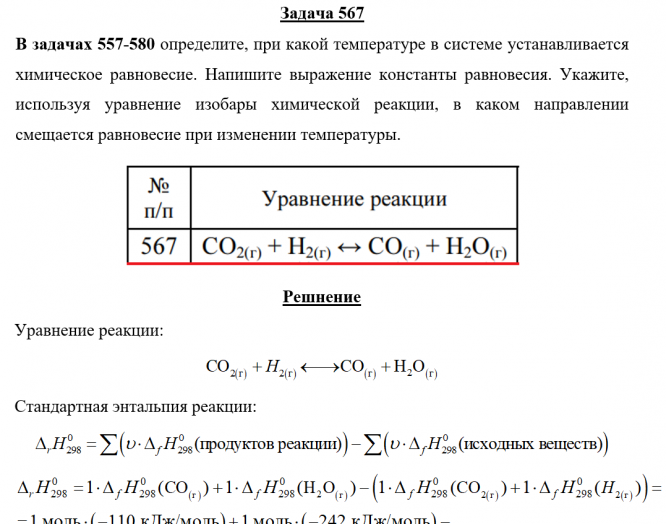 Задача 567:В задачах (557-580) определите, при какой температуре в системе устанавливается химическое равновесие,