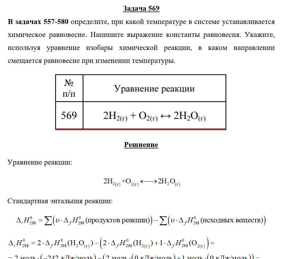 Задача 569 - определите, при какой температуре в системе устанавливается химическое равновесие. Напишите выражение константы равновесия. Укажите, используя уравнение изобары химической реакции, в каком направлении смещается равновесие при изменении т