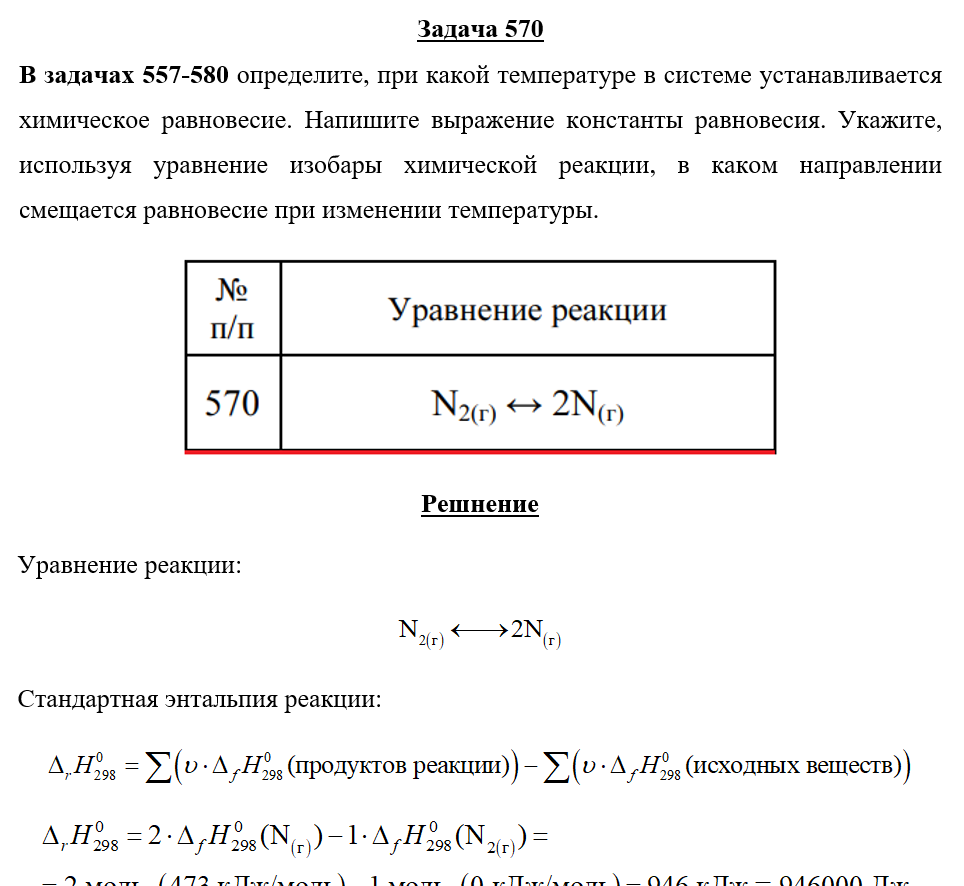 Задача 570 - определите, при какой температуре в системе устанавливается химическое равновесие. Напишите выражение константы равновесия. Укажите, используя уравнение изобары химической реакции, в каком направлении смещается равновесие при изменении т