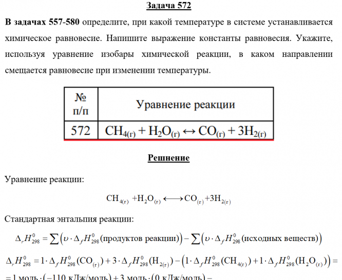 Задача 572 - определите, при какой температуре в системе устанавливается химическое равновесие. Напишите выражение константы равновесия. Укажите, используя уравнение изобары химической реакции, в каком направлении смещается равновесие при изменении т