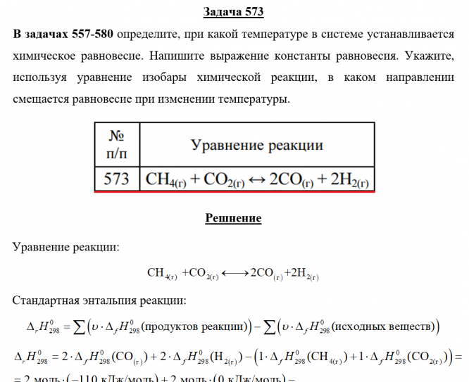 Задача 573 - определите, при какой температуре в системе устанавливается химическое равновесие. Напишите выражение константы равновесия. Укажите, используя уравнение изобары химической реакции, в каком направлении смещается равновесие при изменении т