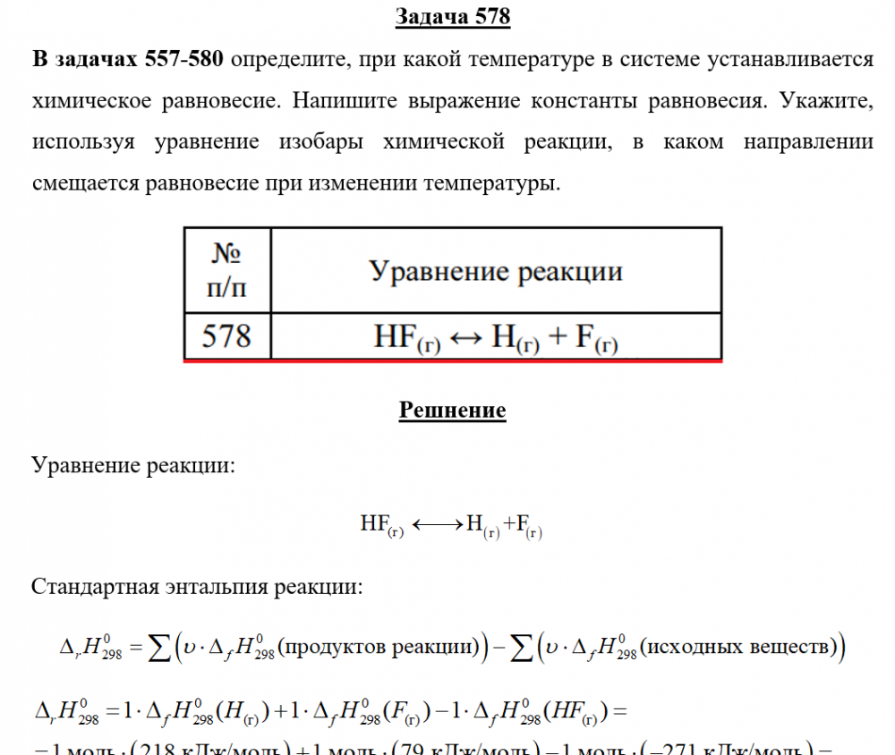Задача 578 - определите, при какой температуре в системе устанавливается химическое равновесие. Напишите выражение константы равновесия. Укажите, используя уравнение изобары химической реакции, в каком направлении смещается равновесие при изменении т