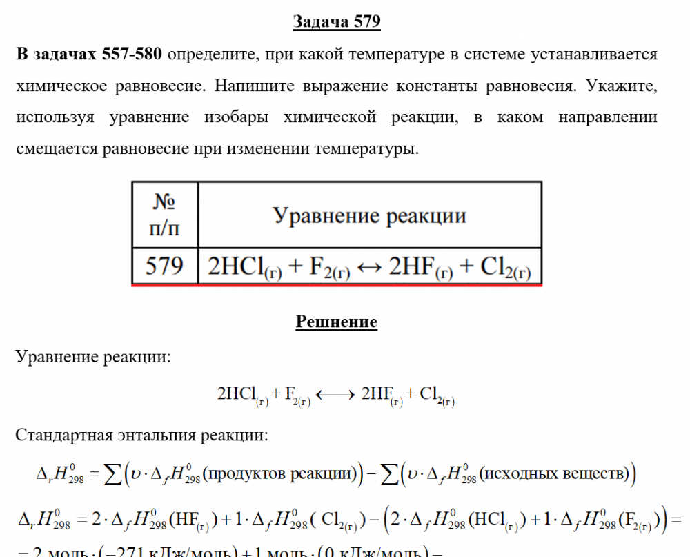 Для студентов по предмету ХимияЗадача 579 - определите, при какой температуре в системе устанавливается химическое равновесие. Напишите выражение константы равновесия. Укажите, испоЗадача 579 - определите, при какой температуре в системе устанавливается химическое равновесие. Напишите выражение константы равновесия. Укажите, испо