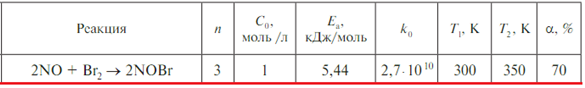 Задача 613 - по известным экспериментальным данным (n — порядок реакции; Ea — энергия активации; k0 — предэкспоненциальный множитель в уравнении Аррениуса (имеет размерность скорости соответствующего порядка); Т1 и Т2 — начальная и конечная температу