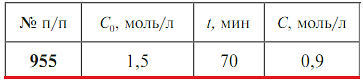Задачи 951-960 (табл. 2.17). Рассчитайте для элементарной реакции второго порядка А + В → АВ при одинаковых начальных концентрациях реагентов С0 константу скорости реакции и время полупревращения t1/2 обоих веществ, если известно, что через некоторое время t концентрация вещества А уменьшилась до значения С.