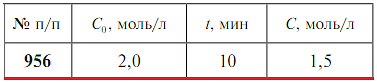 Задачи 951-960 (табл. 2.17). Рассчитайте для элементарной реакции второго порядка А + В → АВ при одинаковых начальных концентрациях реагентов С0 константу скорости реакции и время полупревращения t1/2 обоих веществ, если известно, что через некоторое время t концентрация вещества А уменьшилась до значения С.