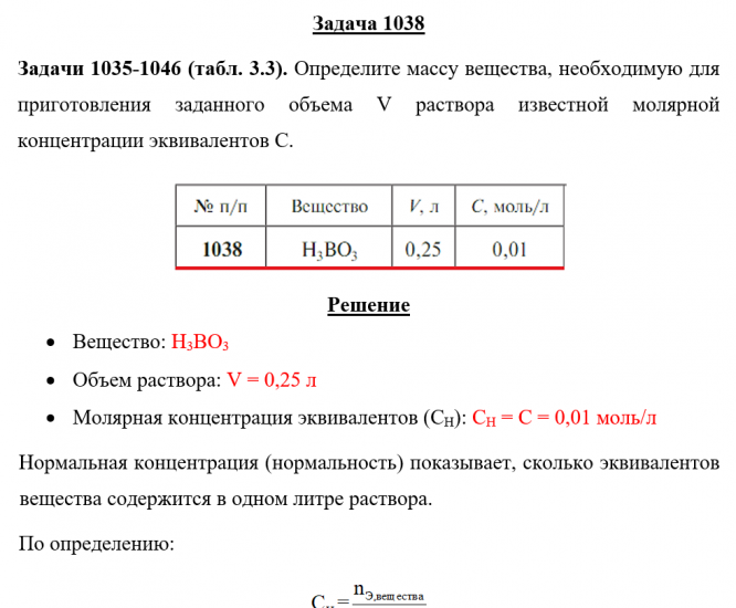 Для студентов по предмету ХимияЗадача 1038 - Определите массу вещества, необходимую для приготовления заданного объема V раствора известной молярной концентрации эквивалентов С.Задача 1038 - Определите массу вещества, необходимую для приготовления заданного объема V раствора известной молярной концентрации эквивалентов С.