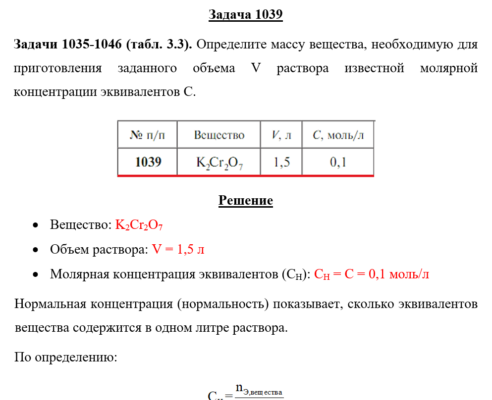 Для студентов по предмету ХимияЗадача 1039 - Определите массу вещества, необходимую для приготовления заданного объема V раствора известной молярной концентрации эквивалентов С.Задача 1039 - Определите массу вещества, необходимую для приготовления заданного объема V раствора известной молярной концентрации эквивалентов С.