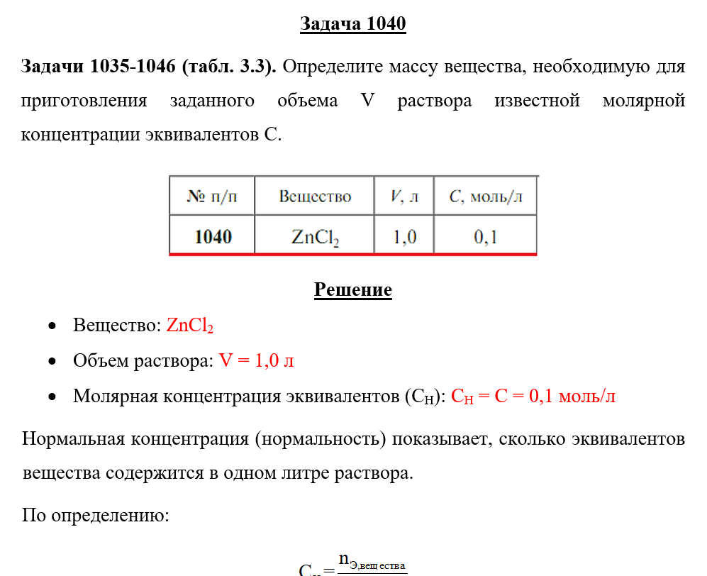 Для студентов по предмету ХимияЗадача 1040 - Определите массу вещества, необходимую для приготовления заданного объема V раствора известной молярной концентрации эквивалентов С.Задача 1040 - Определите массу вещества, необходимую для приготовления заданного объема V раствора известной молярной концентрации эквивалентов С.