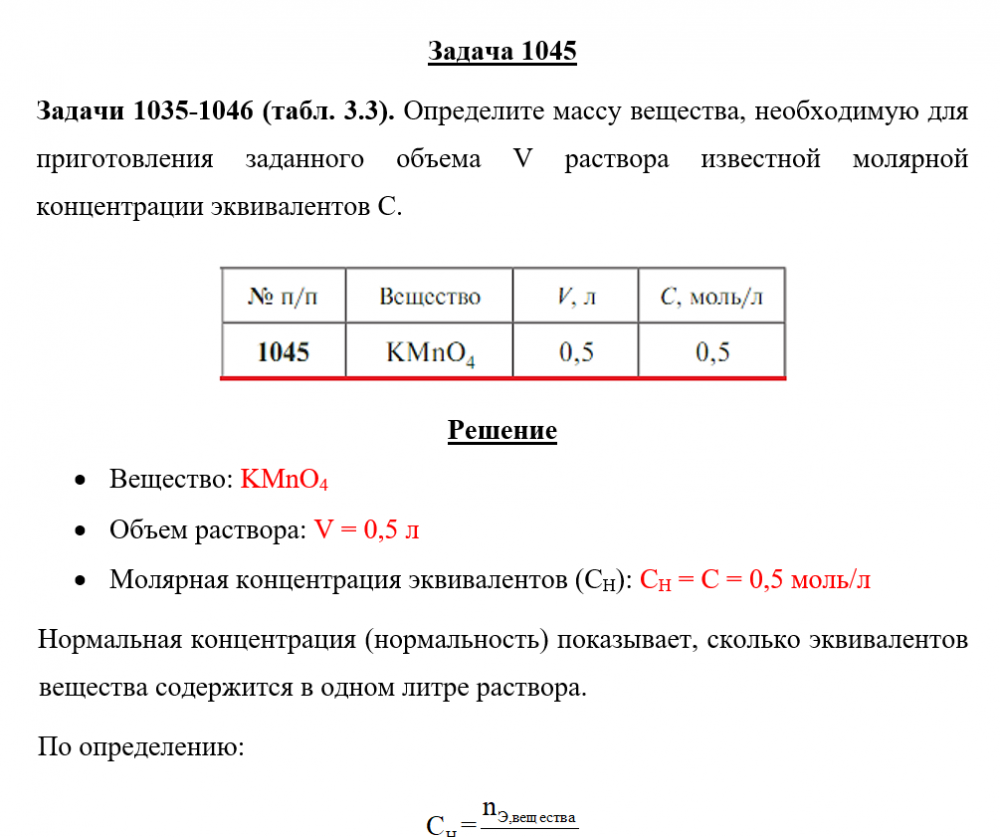 Для студентов по предмету ХимияЗадача 1045 - Определите массу вещества, необходимую для приготовления заданного объема V раствора известной молярной концентрации эквивалентов С.Задача 1045 - Определите массу вещества, необходимую для приготовления заданного объема V раствора известной молярной концентрации эквивалентов С.
