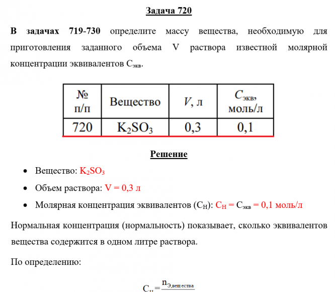 Задача 720 - определите массу вещества, необходимую для приготовления заданного объема V раствора известной моляр-ной концентрации эквивалента Сэкв.