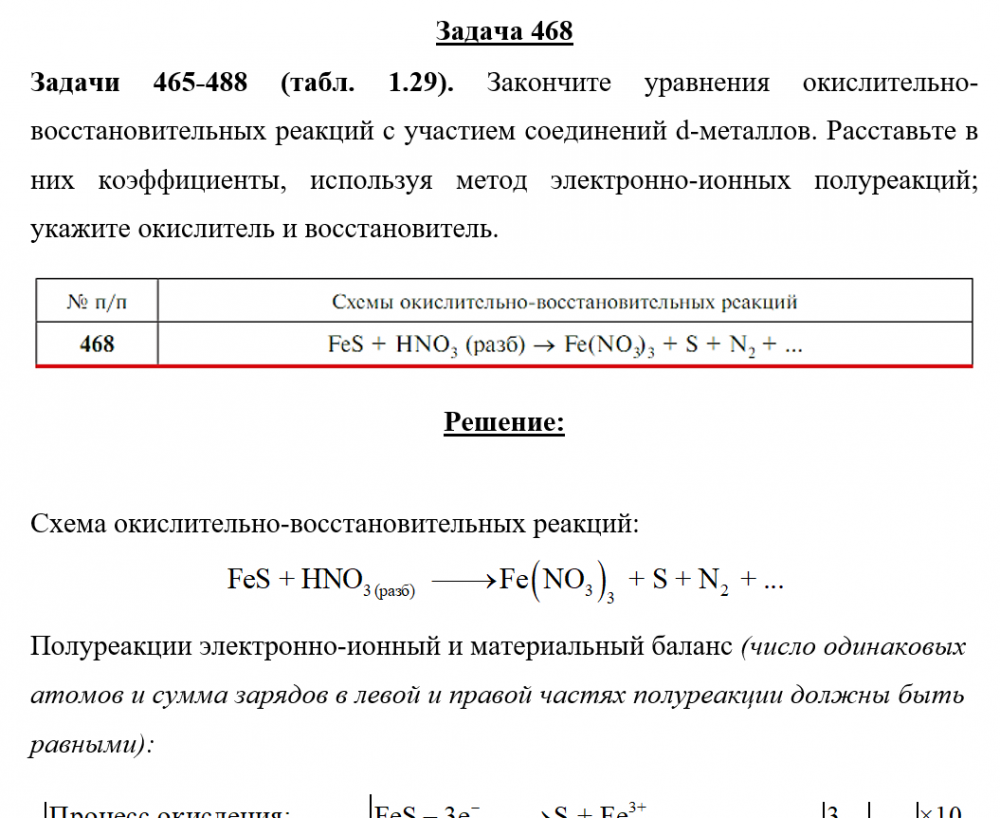 Задачи 465-488 (табл. 1.29). Закончите уравнения окислительно-восстановительных реакций с участием соединений d-металлов. Расставьте в них коэффициенты, используя метод электронно-ионных полуреакций; укажите окислитель и восстановитель.