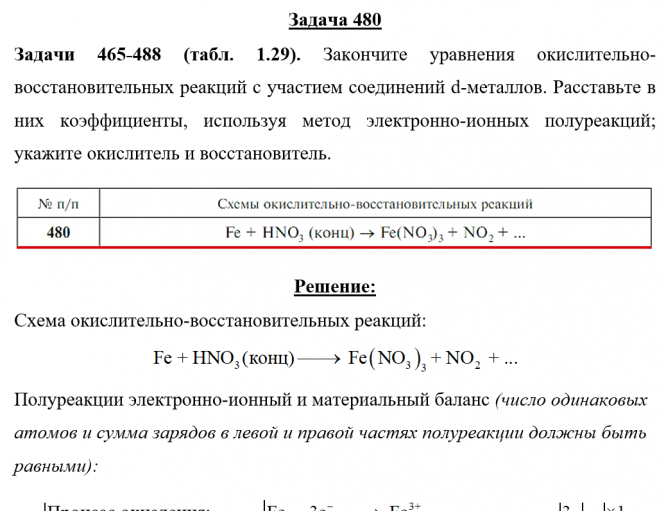 Задачи 465-488 (табл. 1.29). Закончите уравнения окислительно-восстановительных реакций с участием соединений d-металлов. Расставьте в них коэффициенты, используя метод электронно-ионных полуреакций; укажите окислитель и восстановитель..
