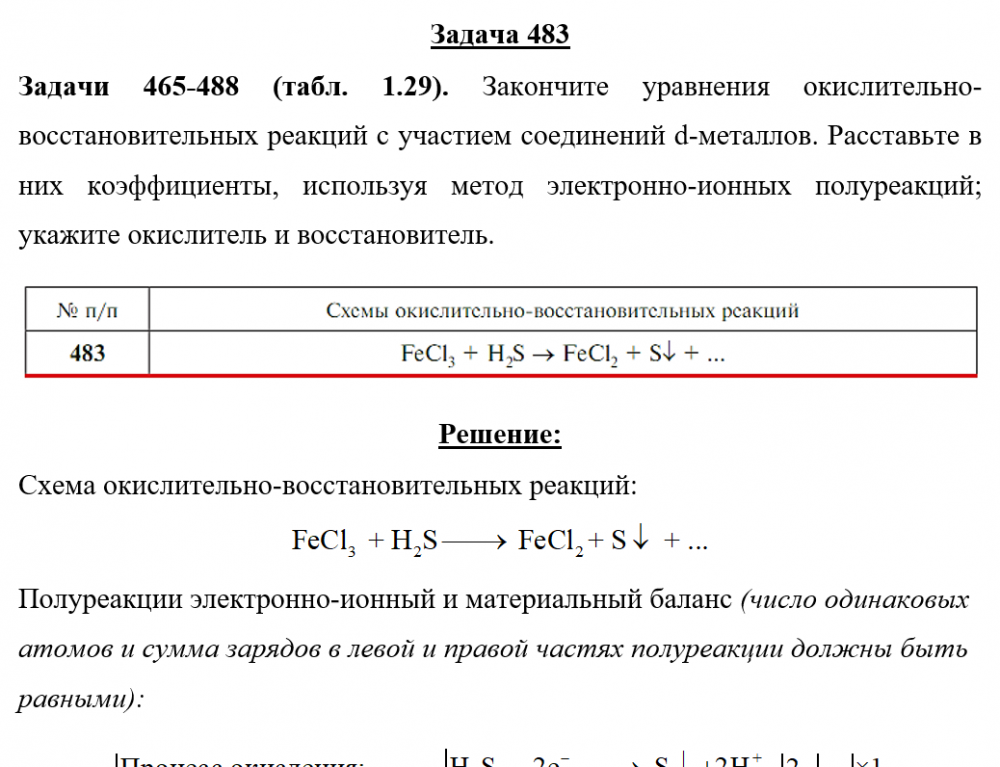 Задачи 465-488 (табл. 1.29). Закончите уравнения окислительно-восстановительных реакций с участием соединений d-металлов. Расставьте в них коэффициенты, используя метод электронно-ионных полуреакций; укажите окислитель и восстановитель.