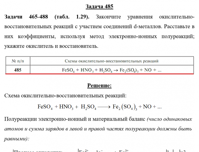 Задачи 465-488 (табл. 1.29). Закончите уравнения окислительно-восстановительных реакций с участием соединений d-металлов. Расставьте в них коэффициенты, используя метод электронно-ионных полуреакций; укажите окислитель и восстановитель.