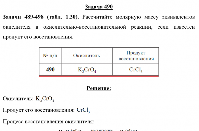 Задачи 489-498 (табл. 1.30). Рассчитайте молярную массу эквивалентов окислителя в окислительно-восстановительной реакции, если известен продукт его восстановления..