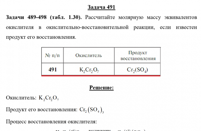 Задачи 489-498 (табл. 1.30). Рассчитайте молярную массу эквивалентов окислителя в окислительно-восстановительной реакции, если известен продукт его восстановления..