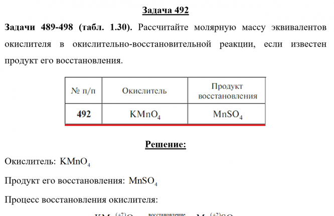 Для студентов по предмету ХимияЗадача 492 - Рассчитайте молярную массу эквивалентов окислителя в окислительно-восстановительной реакции, если известен продукт его восстановления.Задача 492 - Рассчитайте молярную массу эквивалентов окислителя в окислительно-восстановительной реакции, если известен продукт его восстановления.
