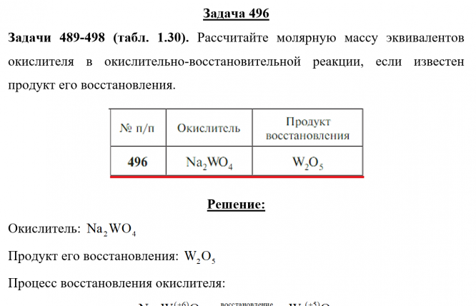 Задачи 489-498 (табл. 1.30). Рассчитайте молярную массу эквивалентов окислителя в окислительно-восстановительной реакции, если известен продукт его восстановления.