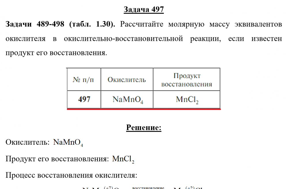 Для студентов по предмету ХимияЗадача 497 - Рассчитайте молярную массу эквивалентов окислителя в окислительно-восстановительной реакции, если известен продукт его восстановления.Задача 497 - Рассчитайте молярную массу эквивалентов окислителя в окислительно-восстановительной реакции, если известен продукт его восстановления.