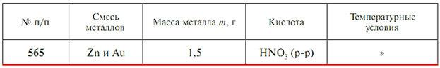 Задачи 563-584 (табл. 1.35). Смесь металлов поместили в кислоту. Составьте уравнения протекающих реакций и рассчитайте объем и количество вещества (газа при н.у.), образовавшегося в результате реакции, если известна масса прореагировавшего металла m..