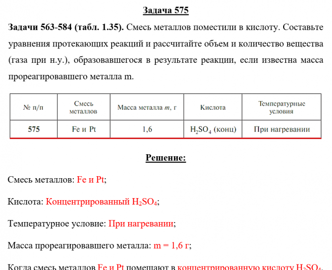 Главная » Учебные материалы » Химия » Решения задач » Несколько классов/семестров » Номер 575 » Задача 575 - Смесь металлов поместили в кислоту. Составьте уравнения протекающих реакций и рассчитайте объем и количество вещества (газа при н.у.), образовавшегося в результате реакции, если известна масса прореагировавшего металла m.