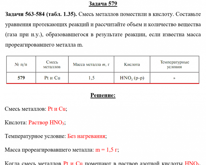Для студентов по предмету ХимияЗадача 579 - Смесь металлов поместили в кислоту. Составьте уравнения протекающих реакций и рассчитайте объем и количество вещества (газа при н.у.), обЗадача 579 - Смесь металлов поместили в кислоту. Составьте уравнения протекающих реакций и рассчитайте объем и количество вещества (газа при н.у.), об