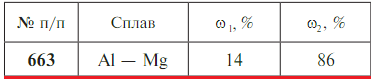 Задача 663 - Рассчитайте, какой объем водорода (н.у.) выделится при действии избытка соляной кислоты на сплав массой 2 г, состав которого задан массовыми долями компонентов ω1 и ω2.