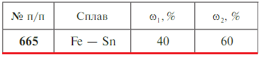 Задачи 663-674 (табл. 1.43). Рассчитайте, какой объем водорода (н.у.) выделится при действии избытка соляной кислоты на сплав массой 2 г, состав которого задан массовыми долями компонентов ω1 и ω2.