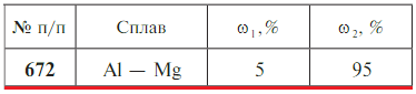 Задачи 663-674 (табл. 1.43). Рассчитайте, какой объем водорода (н.у.) выделится при действии избытка соляной кислоты на сплав массой 2 г, состав которого задан массовыми долями компонентов ω1 и ω2..